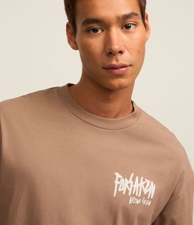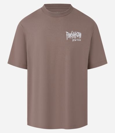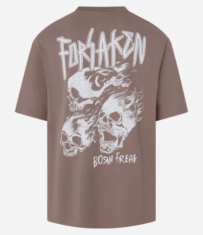 Ref: Camiseta masculina confeccionada em malhão estonado, com gola redonda, manga curta. Peça no modelo relaxed com estampa lettering forsaken born freak e caveiras.