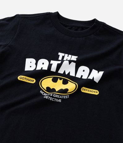 Ref: Camiseta infantil com gola redonda, mangas curtas e estampa Batman. A peça é confeccionada com boas práticas ambientais e algodão certificado bci.