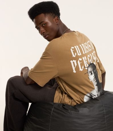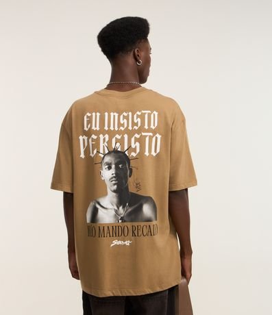 Ref: Camiseta masculina confeccionada em algodão mais sustentável, no modelo relaxed, gola redonda, manga curta. Peça com estampa do rapper Sabotage com lettering Eu insisto persisto.