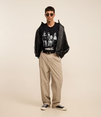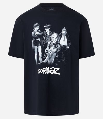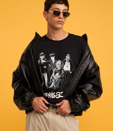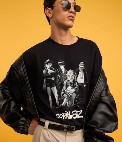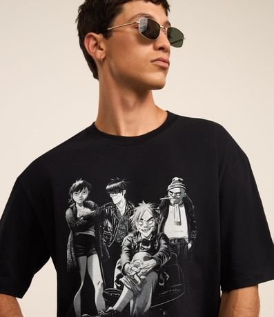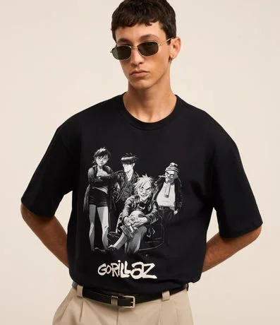 Ref: Camiseta masculina confeccionada em algodão mais sustentável com boas práticas ambientais no modelo relaxed, possui gola redonda, manga curta, estampa Gorillaz.