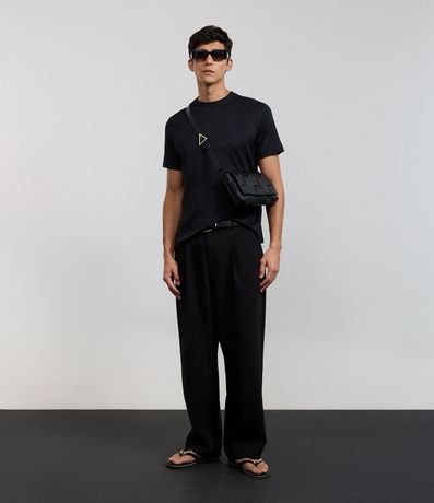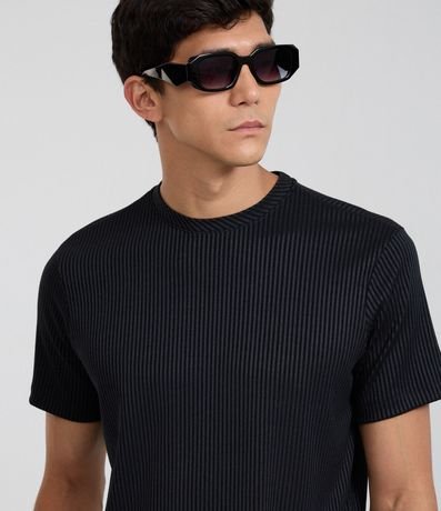 Ref: Camiseta masculina confeccionada em viscose certificada, peça no modelo slim com gola redonda, manga curta, textura vertical e efeito canelado.