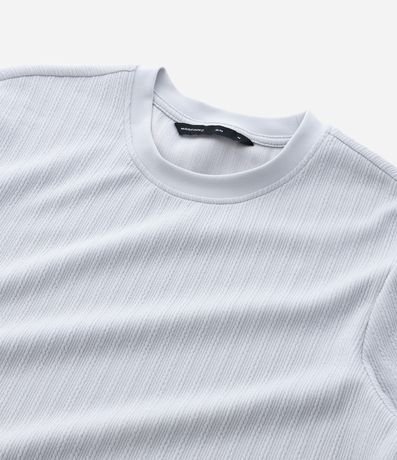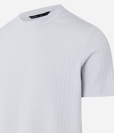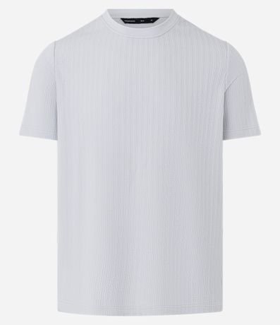 Ref: Camiseta masculina confeccionada em poliéster, no modelo slim. Possui gola redonda, manga curta, sem estampa e com textura vertical.