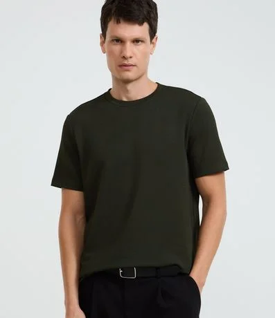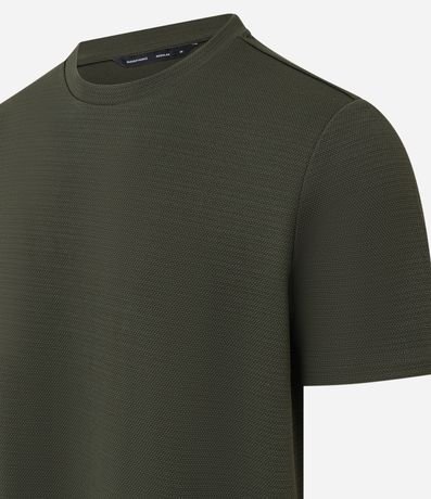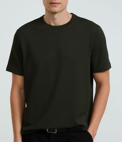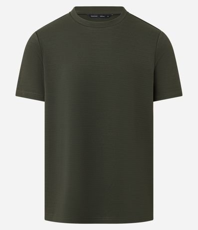 Ref: Camiseta masculina no modelo slim em poliéster. Possui gola redonda, manga curta, sem estampa e texturizada. Em seu diferencial o tecido não amassa