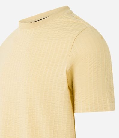 Diferenciada, a camiseta slim com textura de listras, é uma peça descolada e indispensável no guarda-roupa masculino. Estiloso, o modelo é perfeito para você compor aquela produção com presença e muita personalidade.