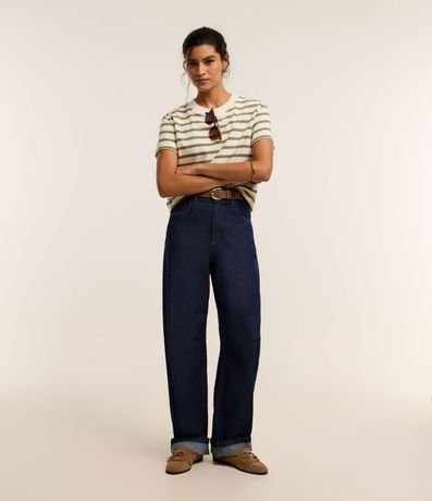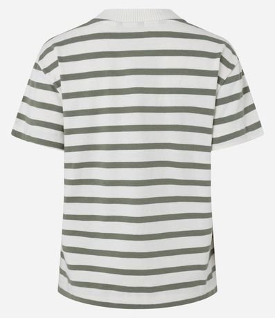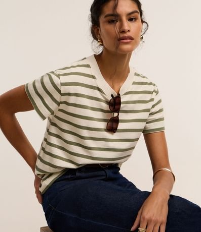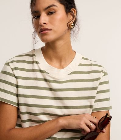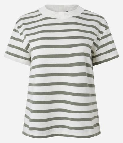 Ref: Camiseta slim manga curta em algodão com listras horizontais e gola redonda.