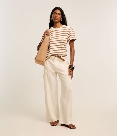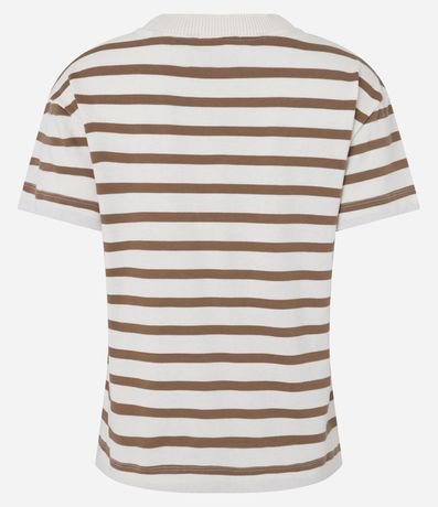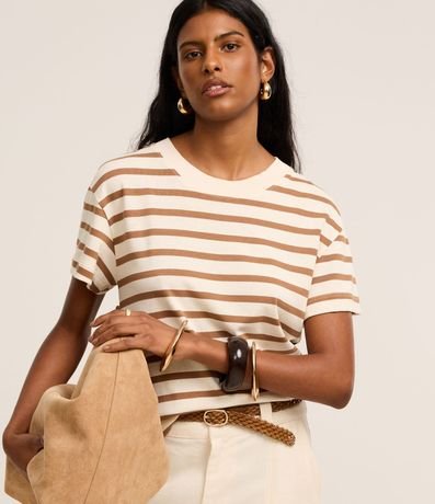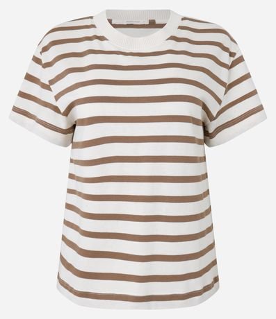 Ref: Camiseta slim manga curta em algodão com listras horizontais e gola redonda.