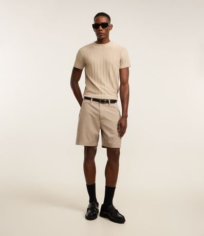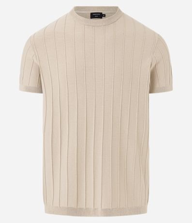 Camiseta masculina de modelo slim, confeccionada em tricô de viscose mais sustentável, com gola redonda e mangas curtas. Sem estampa, possui textura de listras verticais.