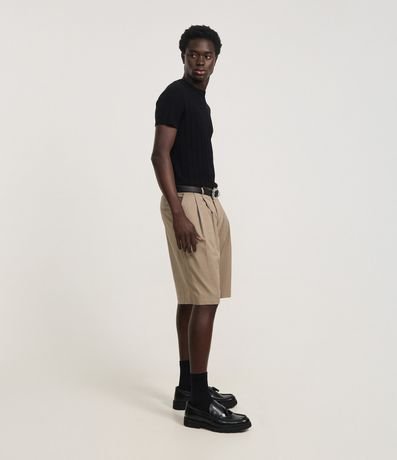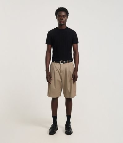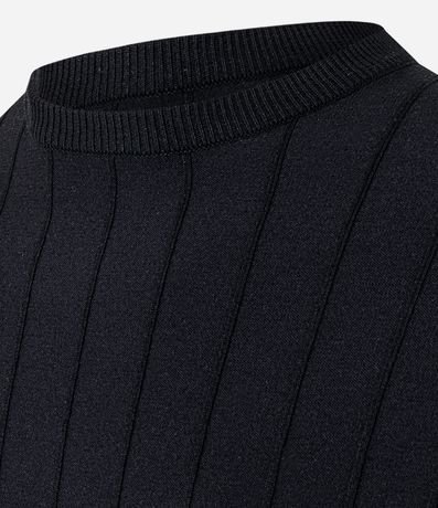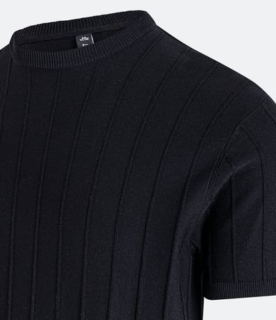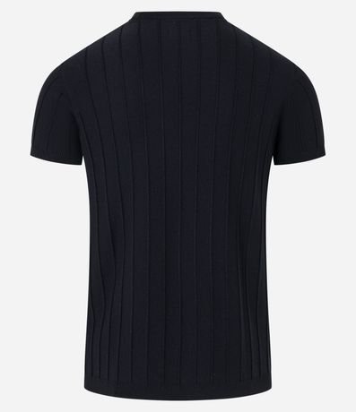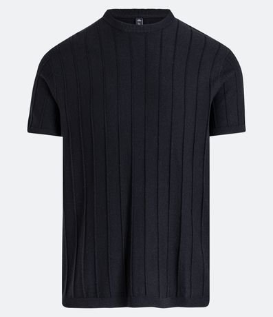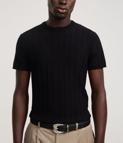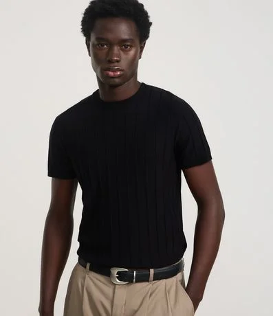 Camiseta masculina de modelo slim, confeccionada em tricô de viscose mais sustentável, com gola redonda e mangas curtas. Sem estampa, possui textura de listras verticais.