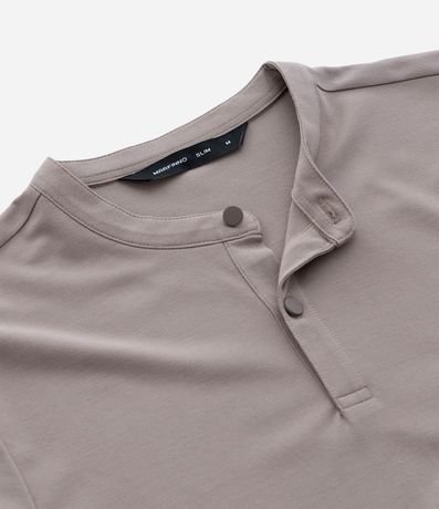 Camiseta masculina confeccionada em viscose mais sustentável através de boas práticas ambientais, no modelo slim. Possui gola padre, com abotoamento, manga curta e sem estampa.