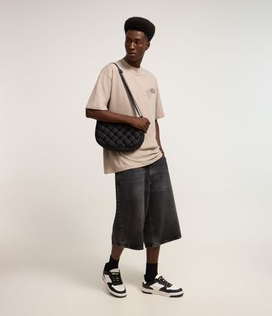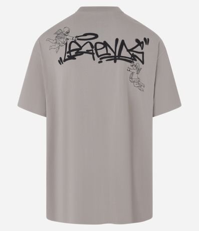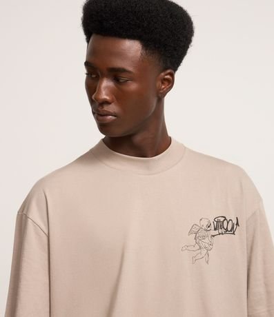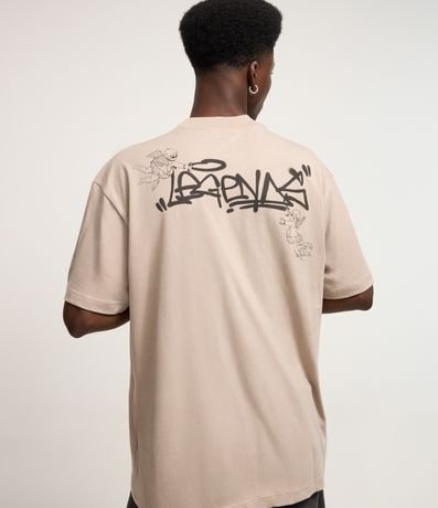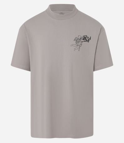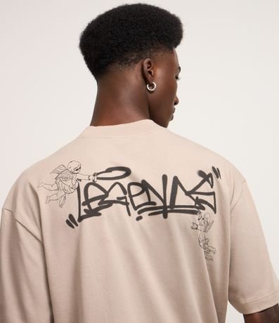 Camiseta masculina confeccionada em malhão mais sustentável, gola redonda, manga curta. Peça no modelo boxy com estampa lettering e angels.