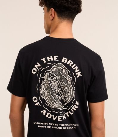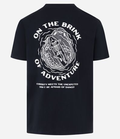 Ref: Camiseta t-shirt comfort de mangas curtas, confeccionada em algodão, com gola redonda e lettering "On the Brink of Adventure" no peito e ampliado nas costas com um esqueleto deitado em uma canoa. Este produto possui algodão certificado BCI em sua composição, além de ter sido produzido através de processos mais sustentáveis com boas práticas ambientais, sendo ambientalmente mais responsável.