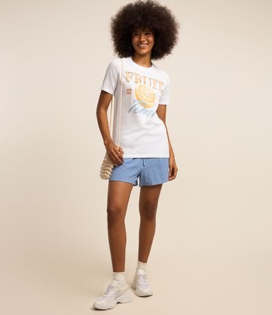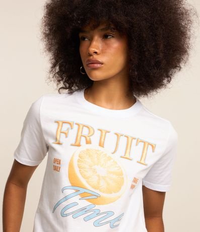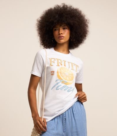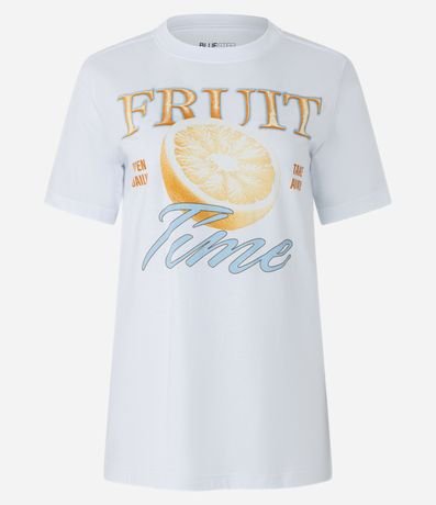 Ref: Camiseta t-shirt com manga curta, confeccionada em algodão mais sustentável e estampa frontal fruit time.