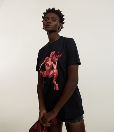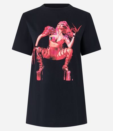 Camiseta T-shirt em Algodão com Estampa Lady Gaga Frente e Costas