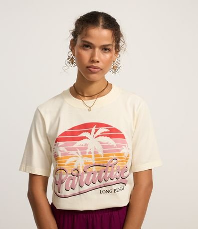 Ref: Camiseta t-shirt, over com manga curta, confeccionada em algodão bci com boas práticas ambientais. Possui estampa frontal Paradise.