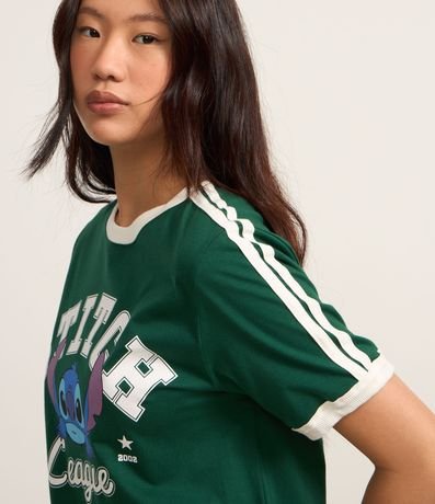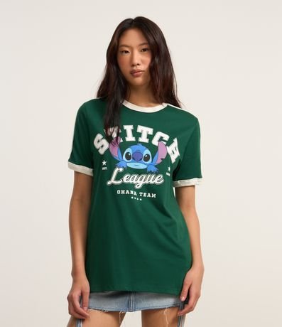 Ref: Camiseta t-shirt com manga curta, gola contrastante, confeccionada em algodão bci mais sustentável. Possui estampa frontal Stitch Ohana.