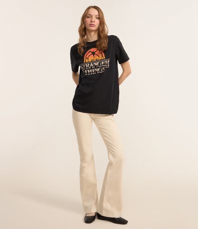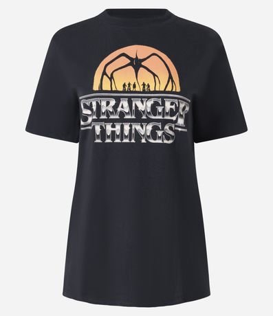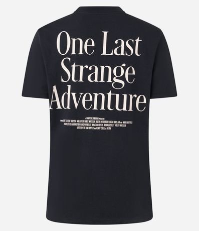 Ref: Camiseta t-shirt de mangas curtas, confeccionada em algodão, com gola redonda e estampa "The Stranger Things" no peito com lettering "One Last Strange Adventure".