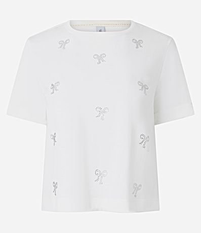 Camiseta T-shirt em Algodão com Laços em Aplicação de Hotfix