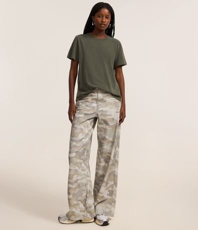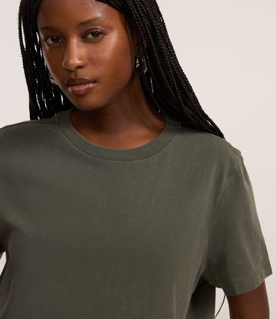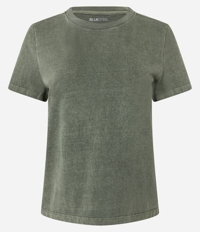 Ref: Camiseta feminina confeccionada em algodão certificado bci, peça com gola redonda, manga curta. No modelo t-shirt com efeito de lavagem desbotada.