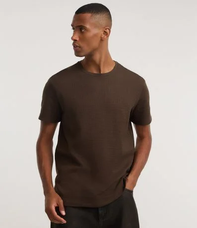 Ref: Camiseta masculina texturizada, sem estampa e com mangas curtas. Confeccionada em tecido waffle. Sua composição contém algodão de certificado BCI, sendo ambientalmente responsável.