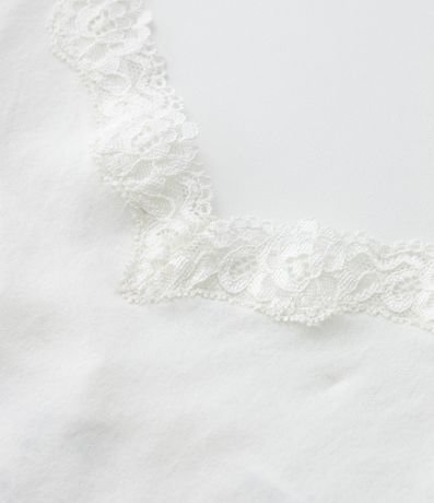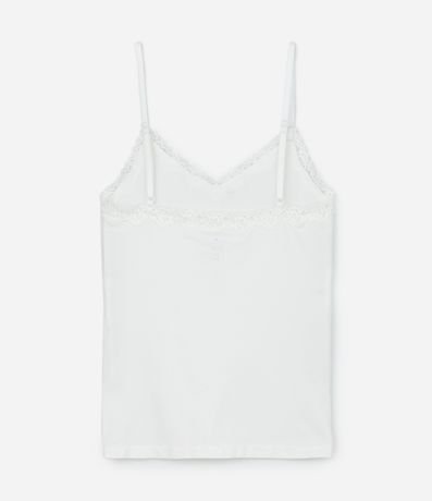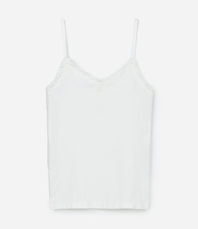 Camisete de alças finas, sem bojo, sem costura, decote V com aplicação de renda.