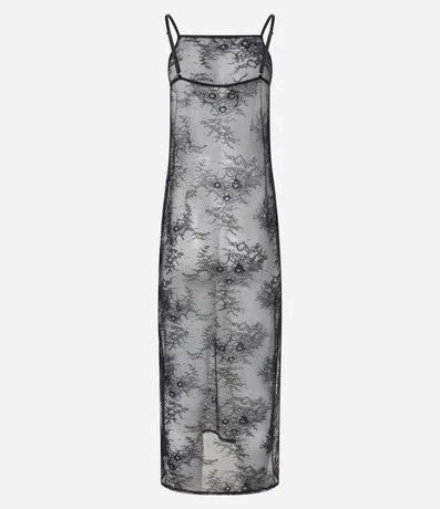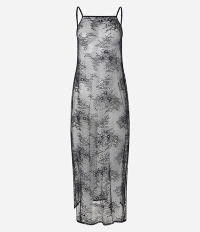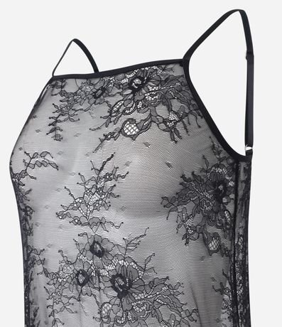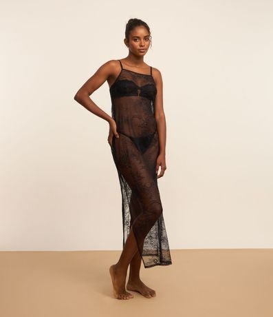 Ref: Camisola longa feminina, confeccionada em laise, com decote reto, alcinhas e textura floral. A peça possui superfície com transparência, o que da a ela um toque sensual.