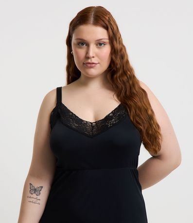 Ref: Camisola curta, confeccionada em liganete, com alças reguláveis, decote V e detalhes de renda.