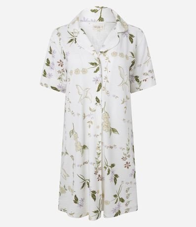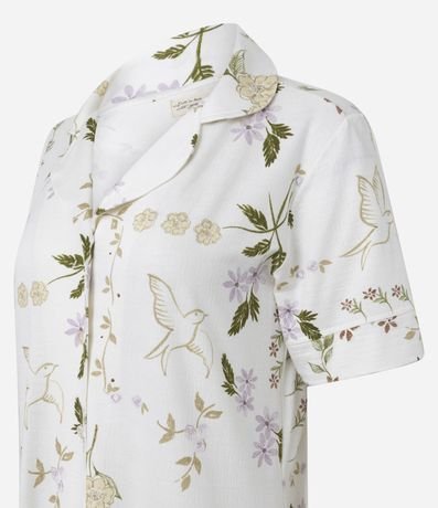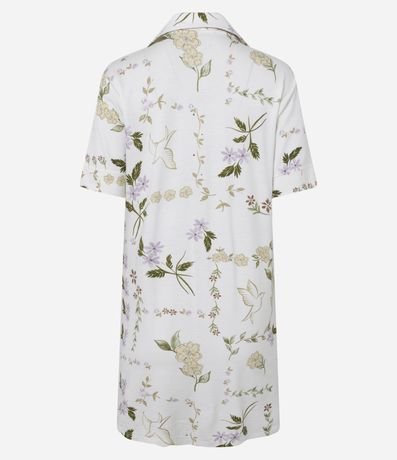 Camisola feminina de modelo americano, confeccionada em viscolycra, com gola colarinho e mangas curtas. Possui estampa floral.