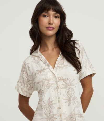 Ref: Camisola de viscose com golinha, mangas curtas e abotoamento frontal.