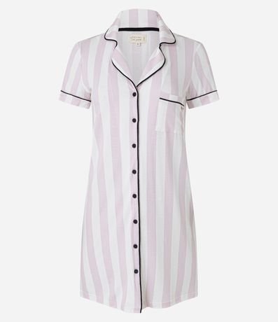 Camisola Americana em Viscose com Estampa Listrada e Detalhes Contrastantes