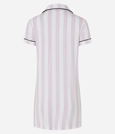 Camisola curta estilo americano com golinha lapela, abotoamento frontal e estampa listrada vertical.