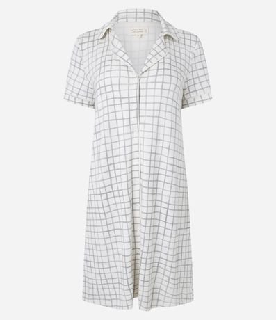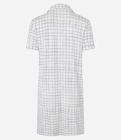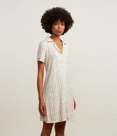 Ref: Camisola curta feminina de modelo americano, confeccionada em malha de viscose mais responsável, com mangas curtas e padronagem xadrez grid.
