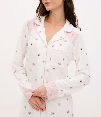 Camisola americana com manga longa, textura em toque suave, bolsinho no peito e detalhe em rendinha.