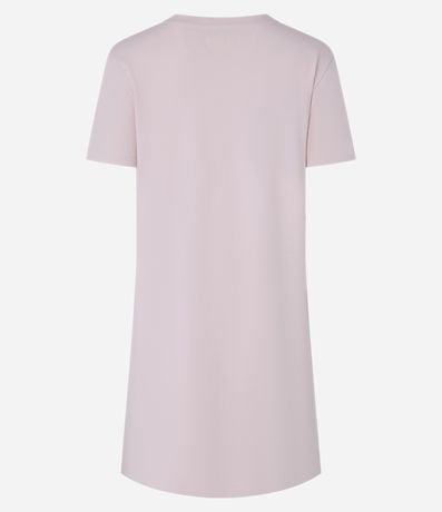 Camisola curta feminina, confeccionada em algodão, com gola redonda, mangas curtas e estampa lettering "Queen of the universe".