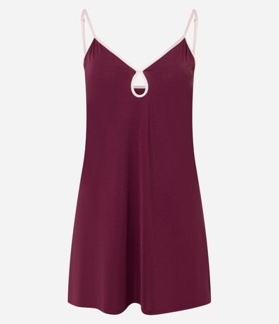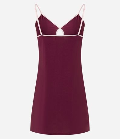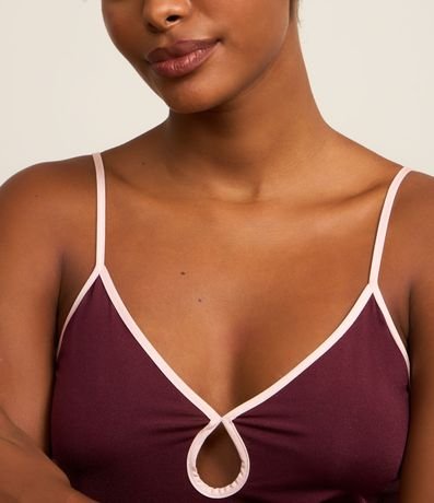 Camisola fresquinha confeccionada em microfibra leve. A peça tem alças finas reguláveis, decote V, recorte vazado em forma de gota e vieses contrastantes.