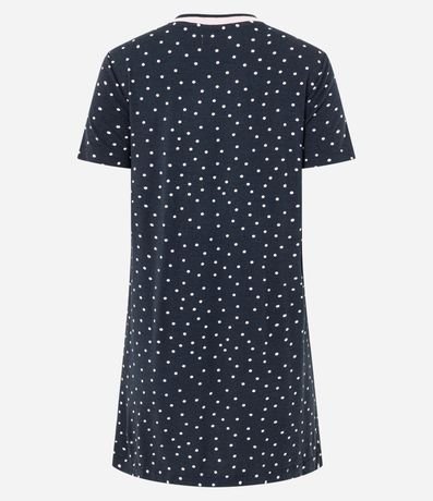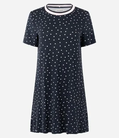 Ref: Camisola curta feminina confeccionada em viscose mais sustentável através de boas práticas ambientais. Possui gola redonda, mangas curtas, viés contrastantes e estampa de bolinhas.
