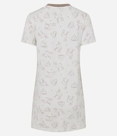 Camisola curta confeccionada em malha de viscose certificada. A peça tem gol redonda contrastante, mangas curtas e estampa de controrno de bichinho.