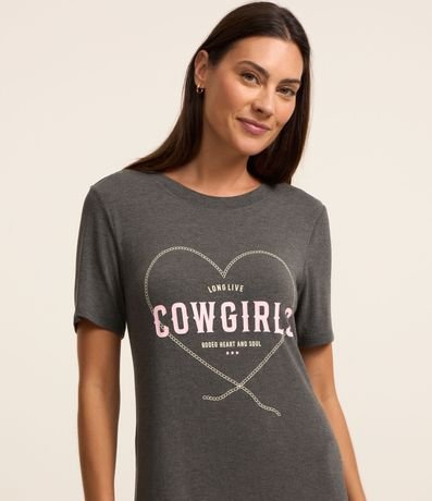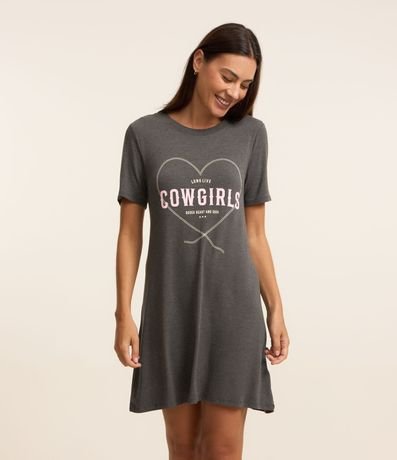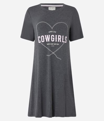Camisola com manga curta, confeccionada em viscose mais sustentável, modelo acima do joelho e com estampa frontal Cowgirls.
