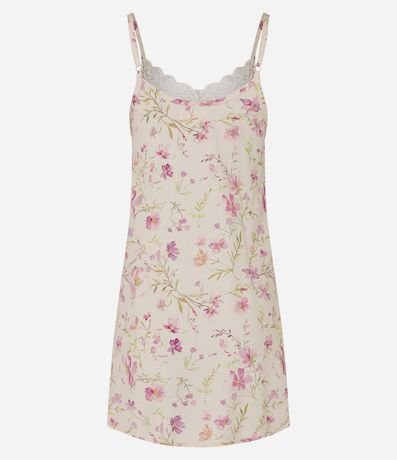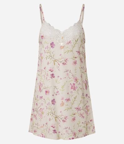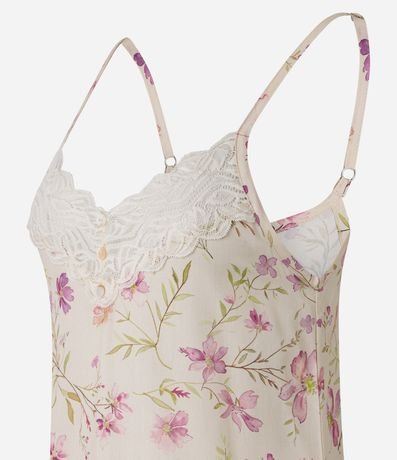 Ref: Camisola de viscose certificada e estampada de flores. A peça delicada e elegante tem alças finas reguláveis, decote V e detalhes em renda e botões.