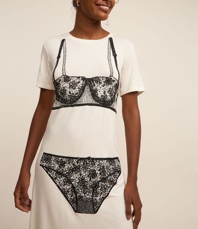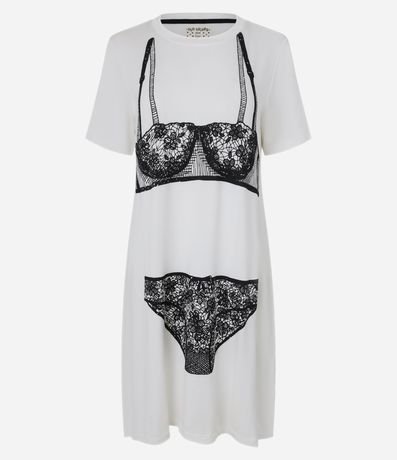 Camisola curta feminina confeccionada em viscose mais sustentável. Peça com estampa de lingerie e mangas curtas.