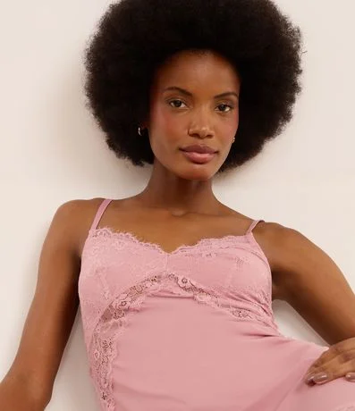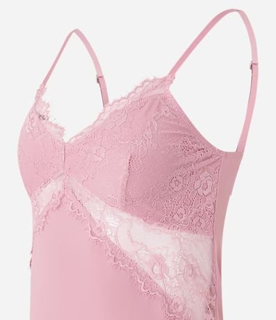 Camisola de alcinhas reguláveis em microfibra leve com decote coração com renda além de renda também na parte detrás da barra.