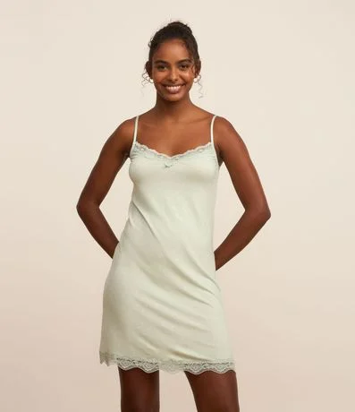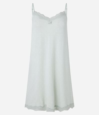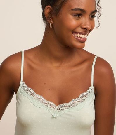 Ref: Camisola feminina de alcinha em viscose com estampa de gravataria e detalhe de renda.
