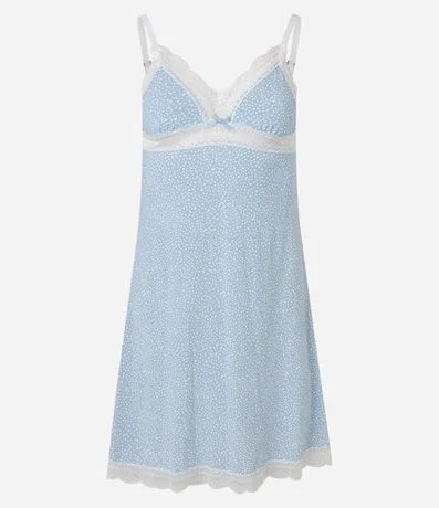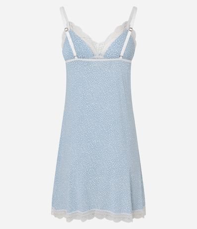 Camisola em Microfibra Poá com Alcinha e Renda