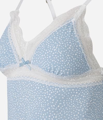 Camisola de microfibra estampada de bolinhas. A peça tem alças finas e detalhe de renda.