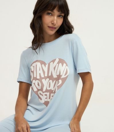 Ref: Camisola confeccionada em malha de viscose. A peça tem mangas curtas e estampa lettering "stay kind to yourself".