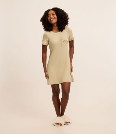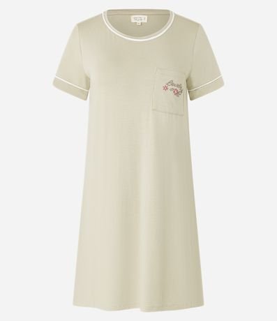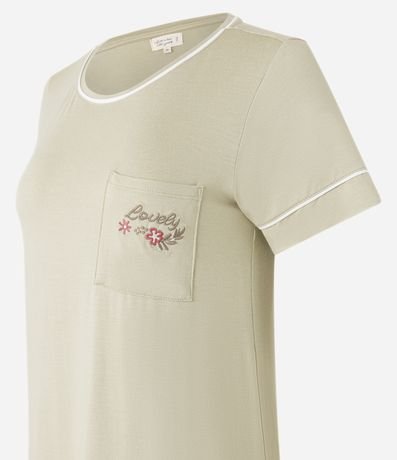 Ref: Camisola curta confeccionada em malha de viscose certificada e sem estampa. A peça tem gola redonda, mangas curtas, bolsinho bordado e detalhes de vieses contrastantes.