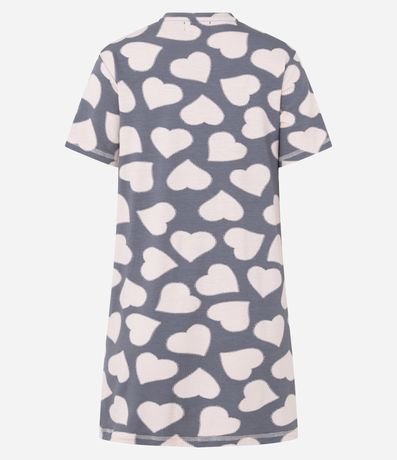 Camisola de viscose com estampa de corações. A peça tem gola redonda, mangas curtas e bolsinho no peito.