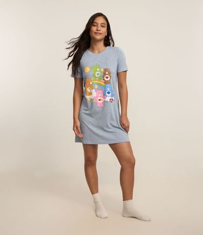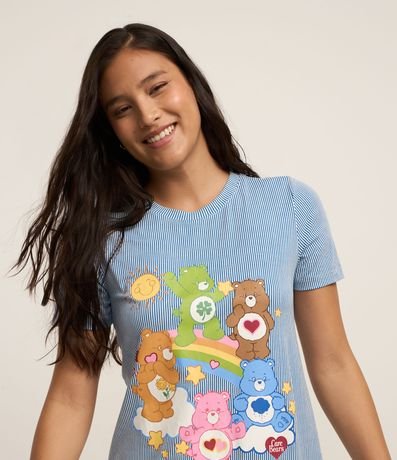 Ref: Camisola de viscose com mangas curtas, fundo listrado e estampa frontal dos Ursinhos Carinhosos.