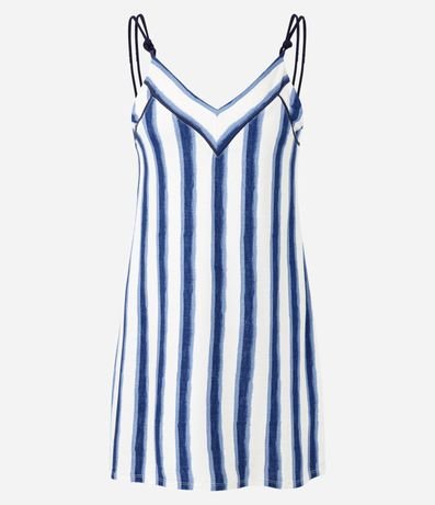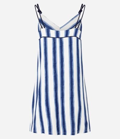 Ref: Camisola curta de viscose estampada de listras verticais com decote V e alças duplas de corda.
