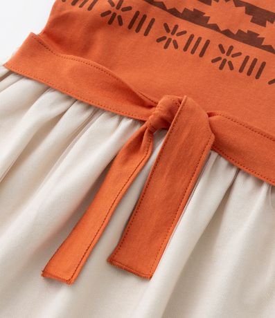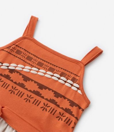 Ref: Camisola infantil confeccionada em algodão mais responsável, com alças finas e amarração na cintura, com estampa da roupa da personagem Moana.