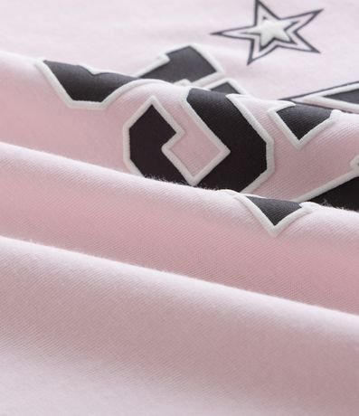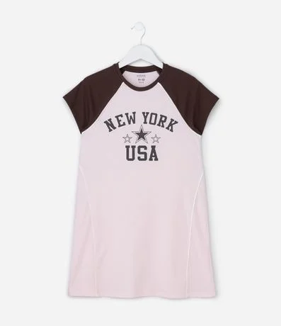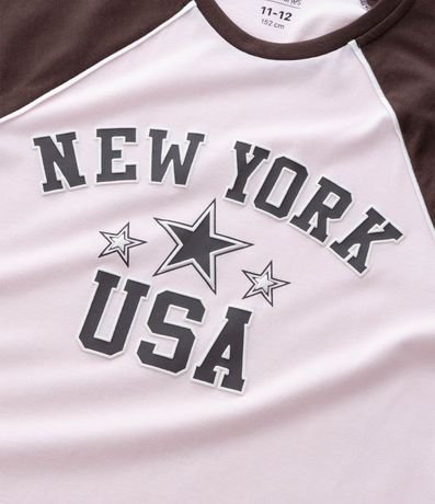 Ref: Camisola infantil confeccionada em algodão certificado BCI, com toque macio e caimento leve. Possui gola redonda, mangas curtas raglan com recortes contrastantes e estampa localizada New York USA em estilo college, garantindo visual moderno e confortável para dormir.